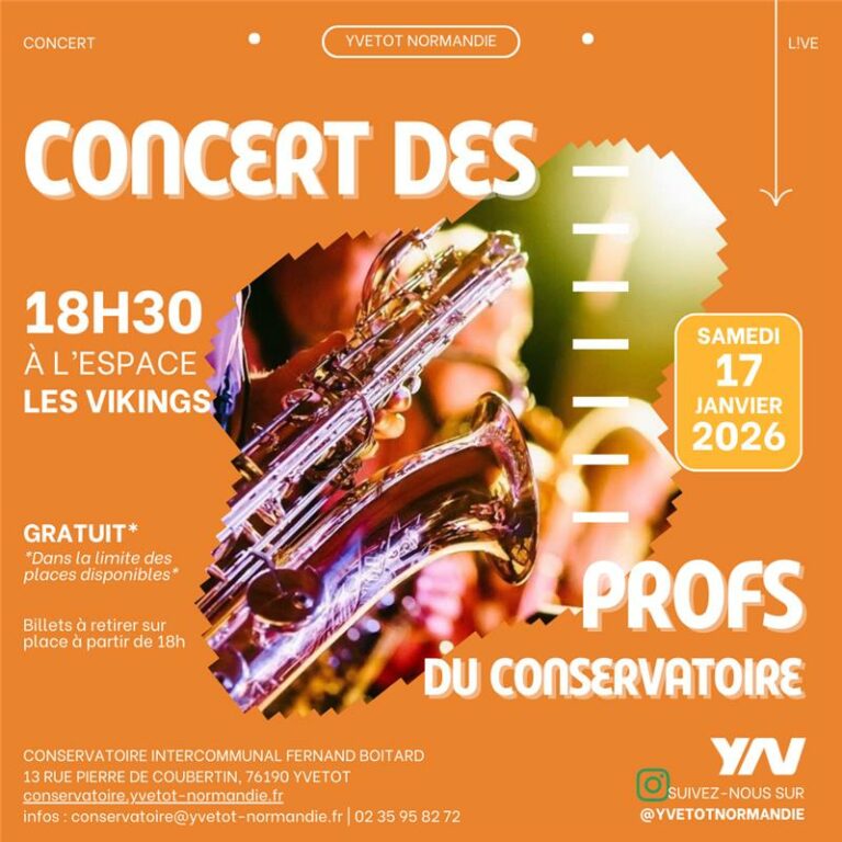 Venez découvrir le répertoire et vibrer au rythme donné par les professeurs du conservatoire Yvetot Normandie !!! Rendez-vous ce samedi 17 janvier pour le Concert des Profs, à 18h30, à l’Espace Culturel Les Vikings, à Yvetot. Un évènement GRATUIT (dans…